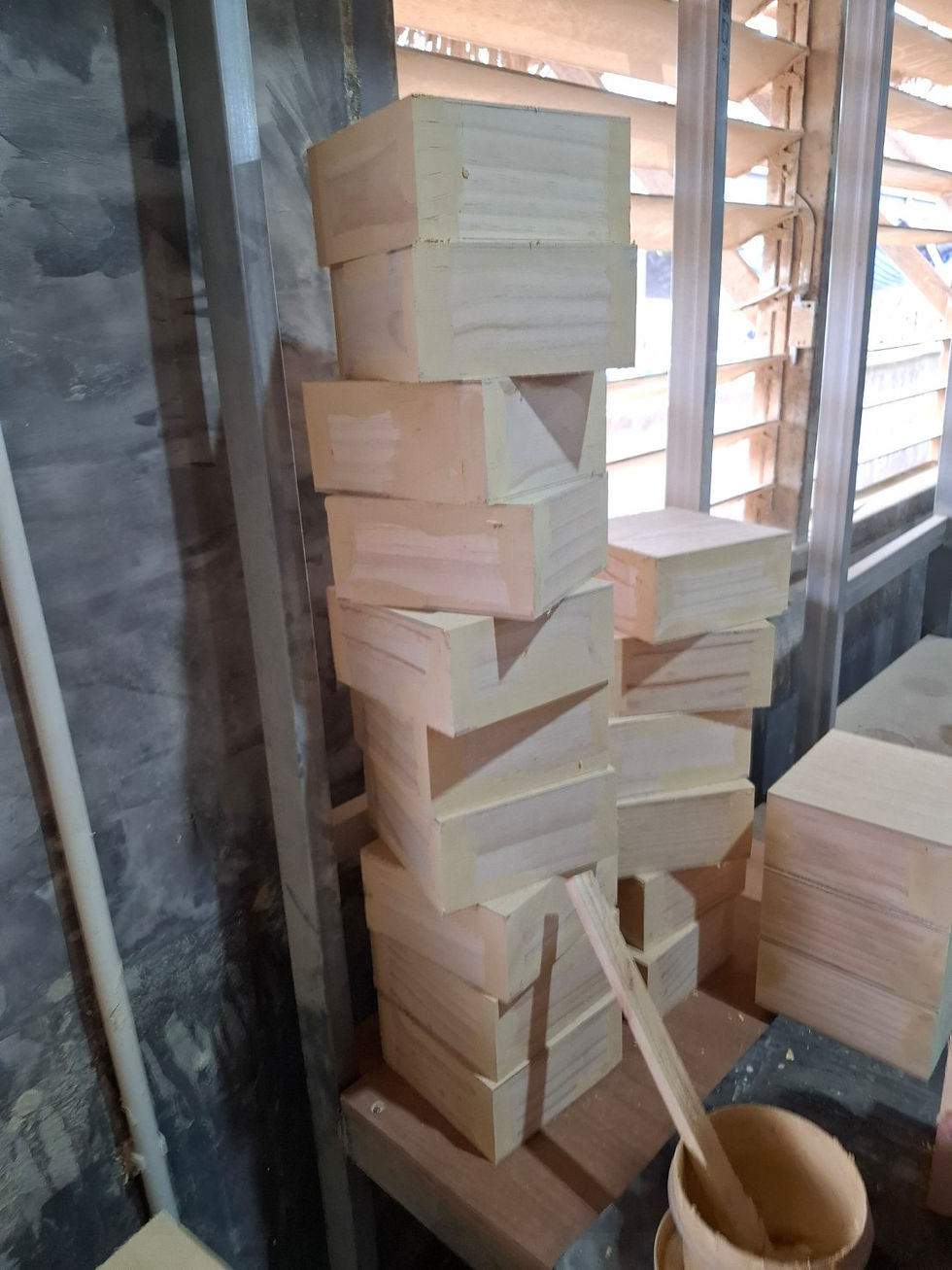 -คุณแอมป์ จำนวน 151 กล่อง รอบแรก ขัดขอบใน เจาะบานพับ เก็บรายละเอียดทาสีได้จำนวน 50 กล่อง