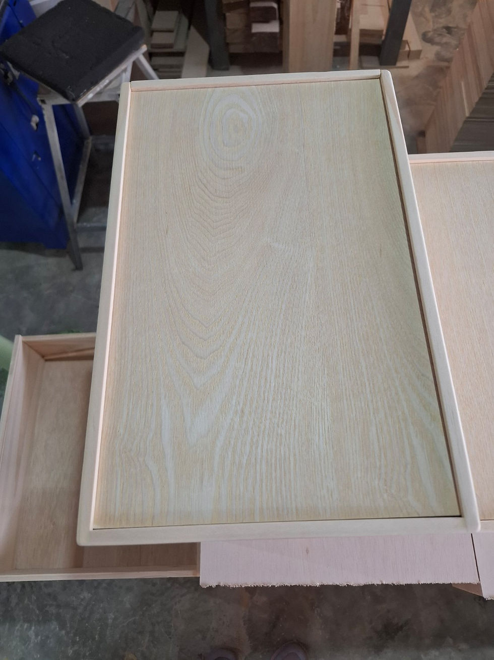ผลการตรวจ งานเริ่มกัดขอบ ตัดไม้ MDF .3 mm.เตรียมปิดด้านบน-ล่าง ด้านชั้นนอก / งานเรียบร้อย